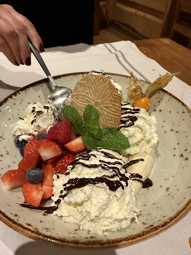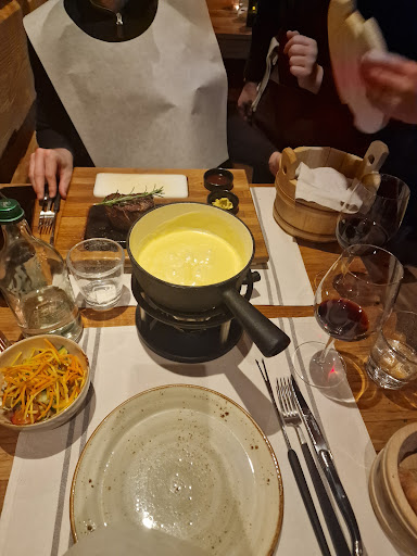 We started our meal with a classic tartar, which was fresh, well seasoned and a great way to beginn our dining experience. For mains, we opted for the cheese fondue and the hot stone Rumpsteak. The cheese fondue was rich, creamy and full of flavour - perfect for a cozy meal. The hot stone Rumpsteak was a highlight; cooking it yourself at the table added a fun, interactive element and the quality of the meat was excellent. However a small heads up: since many guests order the hot stone dishes, you should expect to leave with a lingering food aroma on your clothes.