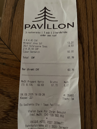 Read moreThe Pavillion is a great place with a wonderful view of the Matterhorn and a childrenâs playground nearby, itâs an ideal place to have lunch. The food was tasty and the service was very attentive. One of the highlights is watching the ice skaters glide across the rink while sipping on a delicious hot chocolate. If youâre feeling adventurous, you can even rent a pair of skates and give it a try yourself! This is a great place to unwind and enjoy the surroundings....