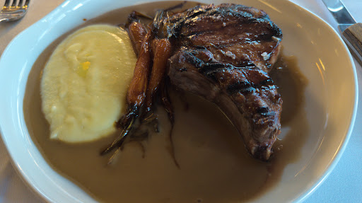 I ordered the Cafe de Paris, a pork cutlet with sauce and potatoes. It was ok, but nothing special. My daughter ordered the hamburger with raclette cheese. It was overly greasy and the bun was soaked in grease. We ordered a bottle of white wine, but the waiter came to open it and put it on ice. Then he forgot to pour the glasses after the food arrived and we had to ask to be poured.