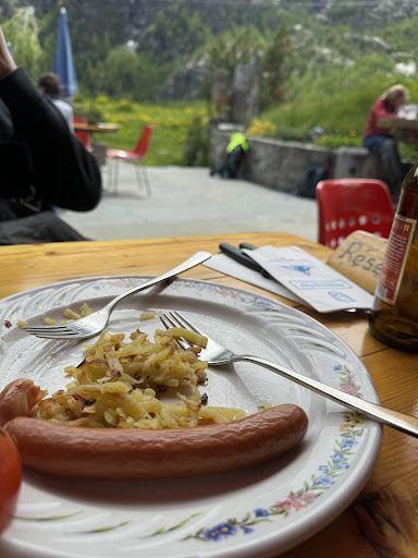 Right place to refuel after a visit to the Matterhorn Glacier paradise. Just right at the exit from Furi station, visible when passing in the gondola. On a warm day sitting at the outdoor patio is such a wonderful and cosy to breathe the Swiss air. Ordered the classic cheese fondue which comes with a basket of bread, carbonara spaghetti just right in cheese and bacon and schnitzel. Cheese fondue was just right not too overpowering , we opted without alcohol for children. The serving team is warm and welcoming with my family, thank you ! There was a birthday celebration event when we were there and we were treated with a band playing local folk music (we think so!). What a perfect afternoon in...