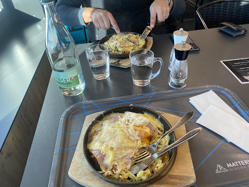 Read moreOverpriced. Tourist trap. Average food. They have signs on the wall that say you cannot drink or eat your own food that you bring. We found that extremely repulsive and drank our own water anyway. To use the restroom up here it cost you 2 CHF per use. Limited resources come to mind but the high price it costs to get up here should cover everything. My spaghetti Napoli cost 25 CHF and the âsausageâ cost 16 CHF. The sausage looked just like hot dogs and fries. The food was pretty average with similar tourist run places (ie: Fronalpstock and Grindelwald First) or maybe even a bit below average. Seating is extremely limited so you may have to wait to sit down or sit with someone else at the table. There are decent views up here of the entire range however in my personal opinion the best Matterhorn views are before you get up here. I would recommend eating at any of the other restaurants on the gondola ride up instead of waiting to eat here. Youâll get cheaper food and probably...