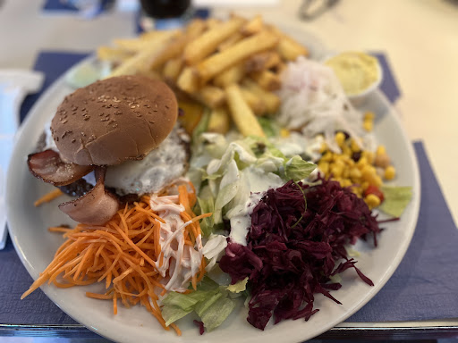 Das Essen schmeckt für Fast Food wirklich gut (nicht nur die Burger, auch die Chicken Strips etc.), die Pommes werden gut gewürzt, der gemischte Salat besteht aus einigen verschiedenen Sorten, die Portionen sind sehr ordentlich (für meinen Geschmack eher schon zu gross - meistens lasse ich mir daher anstelle des normalerweise mitgereichten gemischten Salates nur grünen Salat als Beilage zu den Pommes geben). Natürlich wird hier kaum etwas frisch zubereitet, jedoch stimmt das Preis-/Leistungsverhältnis absolut, wodurch man sich auf jeden Fall gut überlegen muss, ob man wirklich im 50 Meter entfernten McDonalds einen Burger holt, oder doch lieber ein anständiges Menü zu einem sehr fairen Preis geniesst.