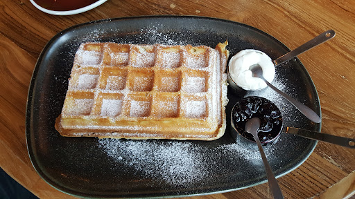 To eat I went a bit overboard but had a Local Waffle with Zuger Cherries and a Chorizo quiche with a "sexy" salad. The waffle was very tasty and although indulgent not too sweet even when topped with the homemade whipped cream.