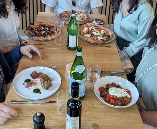 Read moreNot a good restaurant. The space looks good … we made a reservation for 8 and we had our table prepared … on arrival one of our kids asked what’s inside the glass … I was too quick and replied it must be water from the washer but I was Wrong! It was wine , the glass was not washed and still had wine in it. Great start … next we were given some cubes of baked dough that I cannot qualify, just tasteless. Ordered pizzas and daily Pasta. The pasta with funghi was not good and the pizzas were covered with burned bits of other pizzas. The ingredients were good but again the execution failed due to the lack of proper cleaning, in this case, the oven. Coffee was good . The overall experience was mediocre . PS: one last note on the idea of offering matchboxes but...