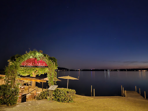 Read moreBei der telefonischen Tischreservierung wurde mir schon gesagt dass ich spätestens um 13:00 ankommen soll... denn 'die Küche' schliesst um 14:00. Also muss ich, als Kunde, mich nach dem Küchenpersonal richten (und nicht vice versa). Ein sonniger Herbsttag und die Konkurrenz-Restaurants, sowie das San Marco sind gut besucht. Wir können an einem (recht) kleinen Tisch platznehmen. Allgemeiner Eindruck von der Ausstattung: Für das Preisniveau und diese Lage (direkt am See) könnte die Ausstattung etwas gepflegter, die Sonnenstore etwas besser unterhalten und die Bestuhlung etwas weniger 'Gartenstuhl-like' sein. Wir (sind zu zweit) und werden bedient von einer jungen weiblichen Bedienung die (wahrscheinlich) nicht ihren besten Tag hat. Kein Lächeln, kein 'willkommen im San Marco... möchten Sie ein Apero vielleicht?... ich kann Ihnen heute Pizza x und Pasta y empfehlen' (the usual small-talk halt). Wir bestellen... Bedienung: 'Was möchten Sie essen?'. Ich: 'Eine Pizza Quattro Formaggi'. Kollege: 'Und für mich eine Pizza Tonno'. Bedienung: '... also eine Pizza San Marco'. Bedienung: 'Trinken?' Ich: 'Ein Bier bitte' Kollege: 'Ich hätte gerne ein Weisswein'. Bedienung: (zeigt auf die Menükarte) 'Das sind unsere Weine'. Kollege: 'OK, dann den da' (und zeigt auf einen Wein im Menü). Bedienung: wortlos... entfernt sich. ... nach einer Weile kommen die Pizzen. Wir essen brav auf und - als Pizzaexperten - empfinden den Teig und den Belag eher als zu trocken. Zum Glück haben wir scharfe Messer. ... Die Pizzen stufen wir als 'mittelmässig' ein. Es gibt viel Konkurrenz in der Nachbarschaft, also muss die Qualität stimmen! Wir sind fertig und deuten der Bedienung an dass wir zahlen möchten. Bedienung: 'Zusammen? Getrennt?' (wir hatten eigentlich eher erwartet dass man nachfragt: 'Hat's geschmeckt?... Möchten Sie noch was trinken?... kann ich Ihnen ein Dessert empfehlen? etc. etc.) Wir bezahlen brav und verlassen das Restaurant ohne 'Auf Wiedersehen... schönen Tag noch... Ciao!'. Under Fazit: Lage: Top! (direkt am Wasser/schöne Aussicht) Ausstattung: verbesserungswürdig. Unsere bestellte Pizzen: mittelmässig (eher zu trockener Teig. Tomatensosse könnte bessere Qualität haben). Preisniveau: mittelmass bis leicht überhöht (für diese Lage). Freundlichkeit der Bedienung: Sorry... aber das geht VIEL besser... man würde - mit der entsprechenden Freundlichkeit und Aufmerksamkeit - auch mehr Umsatz machen. Das ist - vor allem in dieser Pandemie-Zeit und wegen der vielen Konkurrenz in der Nachbarschaft - noch...