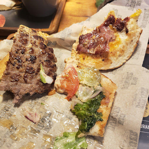 Read moreFood: honestly the burger is superrr simple not wow. Mcd is just across and honestly tasted the same. Fries are pretty good crunchy and fresh. Wings there were pink still inside and from outside too seasoned. I really hate that eating indoor and they give you plastic box for sauce… like i am forced to pollute. Service: waited 13mins to order and there was only 3 tables and 1 of them was already eating Atmosphere: okay style but felt like fastfood shop because the uber deliver were always coming and going. The bathroom had no towels/paper and its a barber shop at...