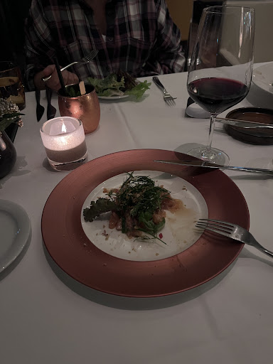 The rest left a lot to be desired: Arriving on-time for our dinner reservation, we waited at the reception desk for a full 10 minutes until the restaurant manager showed us to our table - despite the attentive host from the bar on the opposite side having told her restaurant colleagues that new guests had arrived. As it turned out, the restaurant was hopelessly understaffed and it continued to show. The tables are cramped into the floor space, allowing you to overhear the entire conversation of the table next to you even if they are soft-spoken while making it hard for the serving staff to squeeze through. We waited a full 15 minutes until we were able to order a first drink and another 10 until we received it. We ordered the 4-course kitchen menu which, along with the entire menu, was different to the menu on the Clouds website (on the same day). We initially chose a 2020 Mauro / Castilla y Leon from the menu which was no longer available, no indication of that on the menu however. The amuse-bouche was okay but pretty unimaginative (salmon with creme-cheese on a cracker), the starter (carpaccio) was tasty but the meat somewhat stringy, the first course (fish with kale) was bland and boring, and the main (filet of beef with beetroot mash) was very nice and cooked perfectly. Dessert was chocolate a rather uncreative chocolate ice cream - fruit combo. Overall, the food was not bad BUT neither the food and certainly not the experience lived up to the haute-cuisine experience they claim to offer. At CHF 360 for a dinner for two, there are plenty of better fine-dining choices in Zurich. Unless you want to pay for the view, I cannot recommend...