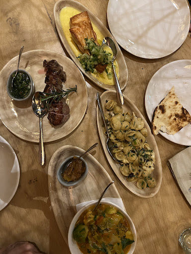 It’s a bit off the beaten path, but easy enough to get to. On a Friday evening the area was very quiet and dark, mainly offices and warehouses, but we arrived and the restaurant was packed. It’s mainly sharing plates. The waitress suggested how much would be enough. We had a few starters, which were all nice. The starters came quickly, but then it took a while for the mains to come. One of the mains was the chicken skewers. We both took some and when we cut into it saw that the chicken was still raw... We told them and they apologized and brought another. That one was cooked, but only just and the meat was really fatty and not very nice. Overall food was good except for the chicken. I’d recommend sticking to...