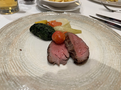 We ordered the Chateaubriand for two, priced at around 70 CHF per person. The dish was served in two separate platings from the kitchen. The first plate arrived without the wine sauce (pic attached), though we didn’t realize it at the time. While the beef itself was tender, it tasted quite bland without the sauce. It was only when the second plate arrived—with the sauce—that we realized the mistake.