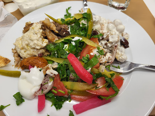 Read moreordered food for takeout it was vegan meat substitute ''sandwiches'' /shawarmas... upon entering the carpet was just left sideways and dirty the employee gave me some shook look upon entering wasn't really friendly or enthusiastic. while waiting i noticed that stuffed wine leaves weren't fresh they looked dried up and old also the 2 small deep friers were dirty with old crusted up oil splashes which clearly wasn't just from today cos it was brown. now the food review the vegan chick'n option was tasteless and just sour and vegiboss ''beef'' or whatever was sour too which makes me think they use expired ingredients cos both tasted sour not just light sourness but to the point where it tasted like soap and it lingers. don't recommend it. plus portion size is small...