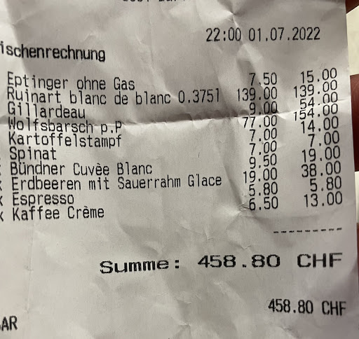 I was disappointed. Food is OK for the price. Wine is outrageously expensive. Really, 235CHF for an Amarone? I enjoy paying food I cannot cook. But being charged 5 times for a bottle I can buy in any shop, that annoys me.