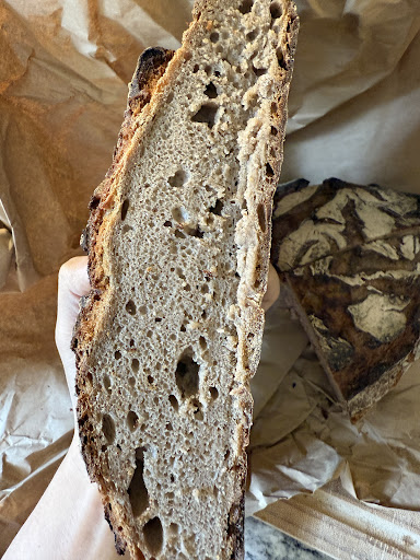 Das Olivenbrot zeigte zwar eine etwas ausgewogenere Volumenzunahme, doch auch hier war die Kruste übermäßig hart. Insgesamt war dies eine sehr enttäuschende Erfahrung – insbesondere beim Roggen- und Dinkelsauerteigbrot, die aus meiner Sicht in diesem Zustand nicht hätten verkauft werden dürfen.