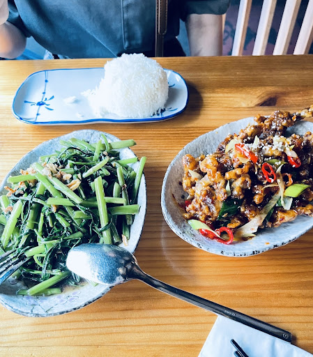 The tables are long and arranged for more of a sharing meal. The decoration is peculiar but hip at the same time. The service is a bit slow, even when there were only three tables during lunch.