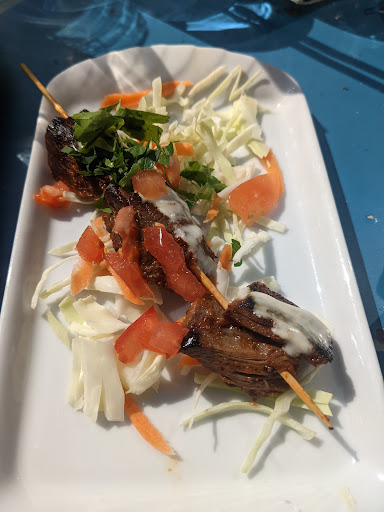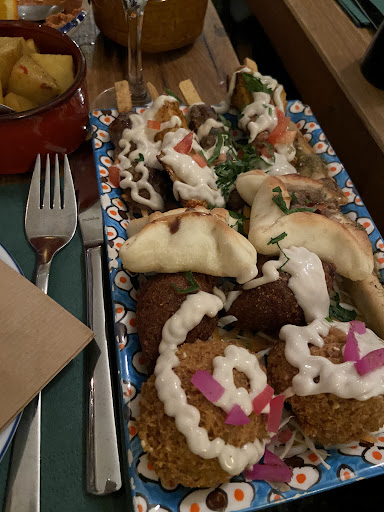 Inside as soon you open the door the place smells fried oil. This will stay in the clothes you use for a few days after you visit. Ventilation ducts are installed, but defenitly not working, so pick a table outside. The food was ok, as a more meat oriented person this is not the place to have a satisfactory experience, (meat parts are ridiculously small) but if you enjoy the middle East flavours it is. Service was fast considering the place was almost full, but this thing of asking what do you want to drink, even when you are not seated in your place and obviously didn't even scan the QR code to open the menu...