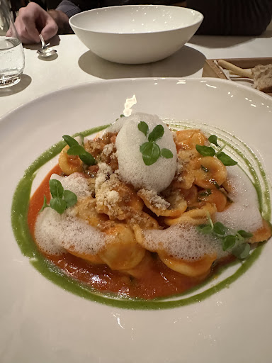 Food: big disappointment. We opted to do two appetizers and two pastas (one can order the pasta dish as a small course or a main, which we did). My appetizer - artichoke filled with roasted vegetables was really shameful in its lack of complexity for technique or flavor. I left half uneaten. My partner had the pork belly which was greasy and not good. The pastas were ok, but really nothing exciting. My partner ordered the Cacio a Pepe - and the server said there would be two parts to the dish when he dropped off the first one. After eating it, my partner simply received another bowl of the same exact dish. We both shook our heads - why not just serve a larger dish so we could both enjoy our meals at the same time? The dish itself, again was mediocre. Same goes for my Orecchiette - expected to be wow’ed - it was just ok but truly not special.