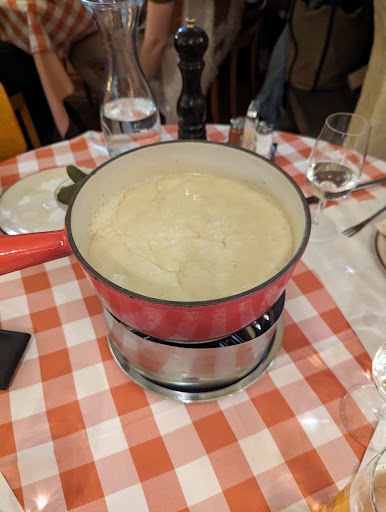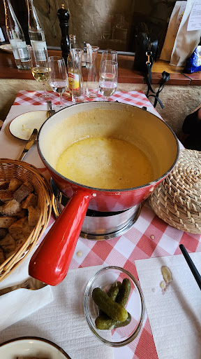 Read moreWe wanted to try traditional fondue while.in Zurich so we went by the restaurant earlier in the day to make a reservation for late afternoon. We happened to meet one of the Staff as she was arriving and she made the reservation for us. Highly recommend making a reservation as it is a very small restaurant and there isn't space to sit and wait for a table. The Staff were very nice, friendly and knowledgeable. They explained how the fondue menu worked and we were a bit confused by it! We ordered the half-and-half with bread & potatoes, and 2 sides of pears & pineapples, and baby pickled onions & baby pickles. The fondue was delicious and had a great flavor and taste but although we enjoyed the experience, it's not something we would rush to try again. It is also extremely expensive $$$$ so be prepared should you want to try this...