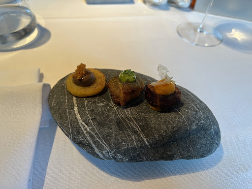 Read moreThe restaurant atmosphere is very charm and intimate for a romantic dinner. We had natural wines and they were good. Service is spotless although a bit dry and limited to the description of the plates/ingredients. The dishes are visually amazing, you really see the amount of care and work put to produce such creations. Also the balance of ingredients is good and the fact that they are all locally and seasonally produced reinforces the passion and care for a sustainable cuisine. However, most of the dishes were tasteless or with a low taste. In my personal opinion, when you strive for quality of products and of preparations you cannot forget the taste and the flavours. A lot of dishes had an intriguing ingredients mix however at the palate they had a very light taste and consistence. Everything depends on how you define and classify quality: if I have to value the sustainability of the cuisine I’d give 5 stars to this restaurant, however as for me the taste of food is key, I can’t give more than 3 star. I fully understand that things cannot be perfect, however the price of a 7 course menu here is hefty (160.-), so my expectations were also very high on all...