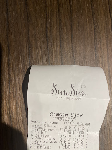 Read moreWe had a wonderful experience at Simsim City in Zurich. The reception was warm and welcoming, and the food was absolutely delicious and fresh. Every member of my family truly enjoyed the meal. The restaurant serves authentic halal food. My personal favorite was the Kushari, while the other dishes — Grilled Chicken, Shawarma, Mezze Teller, and Simsim Salad — were also excellent. A special thanks to the staff — Claudi, Aziz, and Emad — for their outstanding hospitality. They made us feel at home and ensured everything was perfect throughout our visit. Highly...