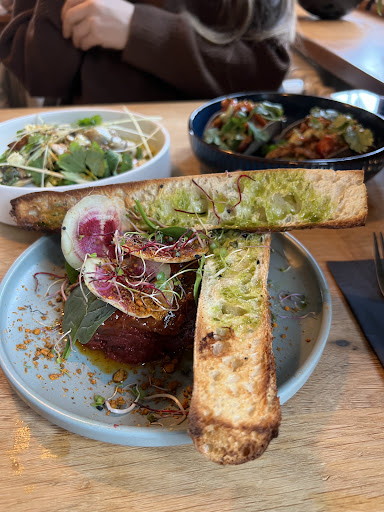 Read moreDuring my recent visit to SEIN in Zurich, I was thoroughly impressed by the exceptional culinary experience. The dishes, including the steak bagel, morning gyoza, taco azul, and carne crudo, were outstanding and surpassed my expectations. As a meat lover, I was particularly amazed by the flavors and creativity of each veggetarian dish. The interior, adorned with dark green tones, adds to the restaurant’s charm and creates a cozy atmosphere. For those seeking a unique dining experience beyond the typical 0815 Züri hipster offerings, SEIN is the place to be. The price is as tou expect it to be in Zurich. Züri prise halt. I look forward to...