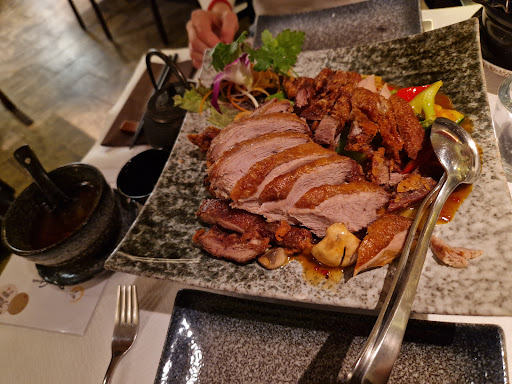 Went with a party of five, two of us former HK residents, so we were really looking forward. Place seems to have a reputation for sushi, which takes significant space in the menu; however, most of the tables today had different dishes. We had a wantan soup, samosa and siu mai for starters, which were fine. Main dishes were the pork with pak choi, the house special duck in hoisin sauce (something with volcano) and a curry with tofu. After the meal I asked around and with strong chinese and thai competition nearby, nobody said they were particularly impressed by the taste (appearance of the food was great). The duck lacked in crispness, hoisin sauce was soso and what the volcano effect is about is still not clear to me (it was a sizzling plate, but this cannot be it). The curry had cocosmilk in abundance and thus had a taste which resembled a ต้มข่า (but without the cilantro etc) more than a curry. All in all it was ok and the price is fair (mains 23-34 mostly) but bith Thai and Chinese dishes can be found better. Service was fast and supernice....