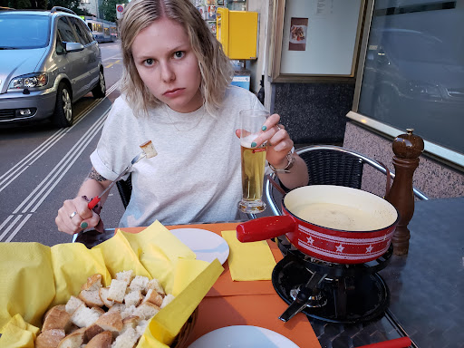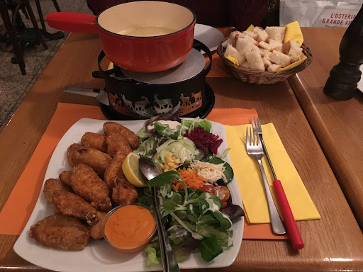 I wanted to visit this place because of the Fondue and the chicken wings. We started with a fondue for two and got a beer too. The owner was friendly and even told us how to eat fondue which I never ate from a big red pot before, so I am very beginner in this type of meal. The cheese mix was having at least 3 cheese in it and some alcohol too I think. We ate it all, although I thought the cheese will never end; we skipped the idea of chicken wings. Mind that during the whole trip in Switzerland there was a heatwave so we were less hungry than usual. The feeling of the interior is the same I got when popped in in Paris to a Taverne for a beer. Anyhow if you are not into the faded retro style maybe you can sit outside. Paid about 70 EUR for two by card including tip. Yes, this is not cheap, nothing is in this country. Access using public transport, very good options are there by tram or combined...