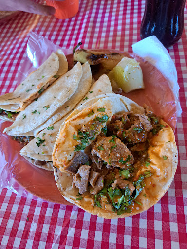 Great street tacos! They have a high volume of clients throughout the day and night. They make everything fresh and the salsa and fresh roasted Chile's and onions take the tacos to the next level. They have all kinds of meats unfortunately they ran out of lengua the time I went but that is expected. Defintely come and give this restaurant a chance with an order of horchata on the side. You will not be...