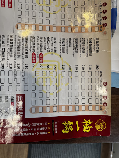 湯頭還行,就是一家便宜,沒什麼品質的火鍋店'更是不歡迎第一次走進店裏對一切都不熟悉的客人喔~帶入座後都有一陣子了~叫了剛好離座位近的服務生問可點餐了嗎?他直接叫你掃描QR Code 裡面有菜單,後就飄走了,對於得趕飛機的人真是浪費時間且不方便,又再問另一位服務員能幫忙點餐?還是講我們店裡只能用QR...