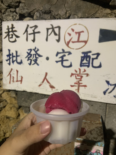 Read more好吃的冰 好吃又不貴 來到澎湖必吃的美食之一就是仙人掌冰啦! 每天都吃一點仙人掌冰 覺得澎湖真的是吃冰的天堂 消暑又清涼!!! 這間「江巷仔內仙人掌冰」真的就位在巷弄裡的神祕住宅區裡, 靠近跨海大橋及通樑古榕這一帶, 附近其實有蠻多家仙人掌冰店的, 最有名的之一應該就是易家仙人掌冰, 但我個人真的不愛, 這次推薦的「江巷仔內仙人掌冰」真的是便宜又好吃, 拍照起來也挺可愛的! 「江巷仔內仙人掌冰」說難找嗎? 其實說難找也不難找,沿路都有路牌 我是從易家仙人掌冰往下走的,走沒多久就會看到這個路牌~ 進去後約走個30秒即可抵達「江巷仔內仙人掌冰」, 那時候去其實還蠻什麼人, 畢竟在巷弄裡比較神秘又隱藏版的感覺, 沒有華麗的店外觀沒關係,我就愛這懷舊古老的感覺~ 點完餐後,立即幫我挖冰淇淋! 店內其實還有販售不少其他的商品, 像是風茹茶、仙人掌汁、蘆薈汁,甚至還有燒酒螺、仙人掌果實等等。 五色冰...