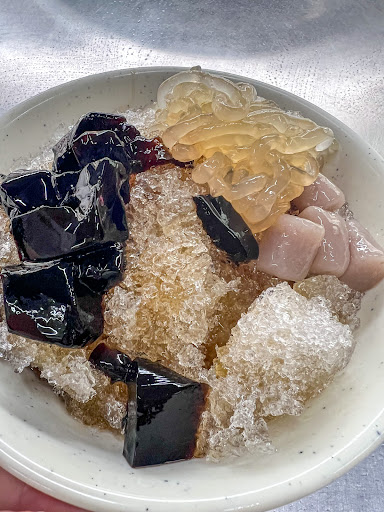 Read more吃完兩種鹹的料理後,就輪到甜點喇~特別找了一間北港必吃的特色冰品之一,也是完全沒吃過的粳粽冰店,雖然有看過類似的冰粽卻沒有吃過這種加入剉冰的粳粽冰~且還是從攤販慢慢轉變成店面的一間老字號冰店,位於北港朝天宮附近目前也只有唯一一間店怎麼可以不支持一下呢!! 💡創始由來完全是出因為客人的一句無心建議,卻因此在北港風靡了超過半世紀~! 🌞夏天營業時間(3月中~11月底)固定週三公休,其餘營業時間從上午11:00~下午18:00,中間無空班休息時間,炎熱天氣下午來上一碗超解熱! ❄️冬天營業時間(12月~3月中旬)每週只營業五、六、日、一,一週四天,現在冬天會冷的天數越來越少,突然想吃還是可以吃得到! 🅿️附近停車不方便,需花點時間找車位,不過外帶都是直接停在店面前,買完就開走了~挺方便 店面外觀是鐵皮屋建造的,搭配開放式座位區,整體氛圍有透清涼的既視感,不過如果是體感溫度超過30°C還是會感覺悶熱感,只要是開放式絕對不可避免的⋯ 🪑座位提供不少桌約可容納10組客人左右~ 千萬別小看只是一間小冰店,只要到尖峰季節與時段基本上都要排隊等候,人潮不多的話不會等太久,有的配料都在檯面上,點餐到出餐不會超過10分鐘~ ✴主要賣剉冰,不過除了粳粽冰外還是有芋圓番薯冰、鳳梨冰、紅豆煉乳冰或是草莓煉乳冰等等,選擇多樣化~ ⚠️只要有地瓜圓及芋圓出餐後會貼心提醒"地瓜圓及芋圓不要攪拌入冰內,要先吃掉不然遇冰會口感會變硬"! 💰粳粽冰可選擇單獨1.沾砂糖2.沾蜂蜜均一價$50元,固定選三種配料均一價$60元 ✨配料選擇相當豐富,人氣的配料真的要早點前來購買⋯有遇到想吃的配料竟然賣完了,最後選了芋圓、仙草、粉條!粉條、芋圓吃起來口感都很Q,味道足夠,感覺得出手工製作的誠意! 📌梗粽需花費8小時才能完成,非常費時、費工,自製的鹼粽比一般的軟Q,梗粽有種特殊味道,也很看人喜好,喜歡會很喜歡,不愛就是不愛,非常分明~ 🧊一碗粳粽冰配上粗粗的碎冰,特色是咬起來軟Q...