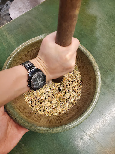 I had a great time learning how to make and cook lei cha (pounded tea). The staff taught us the process, first demonstrating how to pound the ingredients, then letting us try it ourselves. It takes about 5-10 minutes to pound it into a paste that can be mixed with water. It was definitely a fun and interesting experience!