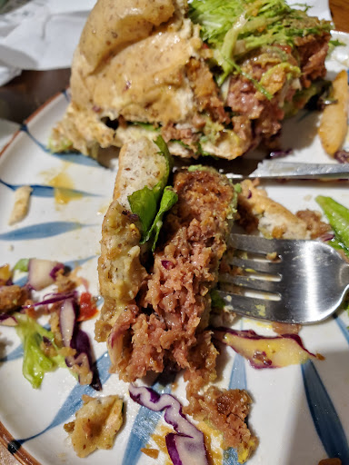 Read moreOne of my favorite vegetarian/vegan places in Taipei! Definetly worth the trip here from central Taipei. Also the prices are much lower than what you would pay at other vegetarian burger spots. I was never a fan of fake meat but theirs is on point. I recommend getting the sweet and spicy chicken and some fried stuff to go with it (fries etc) . Also their soy milk latte and soy milk tea are great! +love...