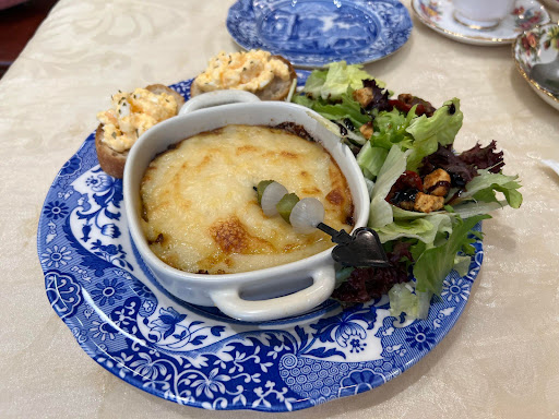 絕佳的英式下午茶體驗,隱藏在社區中的英式茶館,帶給您夢幻且美好的時光。 一入店,立刻進入英倫茶館的氛圍,英國玫瑰花紋的櫃台、吊燈、鮮花裝飾的餐桌,從用餐區到洗手間,都充滿著店家的巧思。 店內低消是每人一壺茶,茶的香氣足夠且味道溫潤。品項有產地茶(例如:大吉嶺)、混調茶(例如:藍伯爵茶),可回沖一次;還有口感醇厚的鍋煮奶茶。為了品嘗茶的原味,鍋煮奶茶僅微糖,如有需要可以在使用桌上的砂糖。 我與同行友人共點了4壺茶,2份英式下午茶三層架、1份沙拉、1份牧羊人派及1份咖哩,最令人驚豔的就是英式下午茶三層架,三明治、司康及蛋糕,相當美味,感覺自己就像是維多利亞時代的名媛,動作也不禁優雅了起來。 為了讓我們能分享茶飲,店家一個人特別使用了2副茶具,是玫瑰紋路的皇家阿爾伯特(Royal Allbert),及藍紋花卉斯波德(Spode),美麗的瓷器讓品茗體驗大大加分,十分感謝店家的貼心。 最後,朋友們都給本次的體驗滿分,比日本的帝國飯店、香港的半島酒店下午茶感受更佳,真心推薦英式紅茶愛好者前往。本店為孩童友善店家,惟店內有許多瓷器,建議家長們可評估孩童的自制力,再決定是否前往。 老闆Kelly致力於推廣紅茶文化,著有、,歡迎愛好者與老闆聊上幾句。