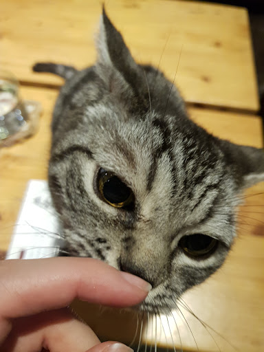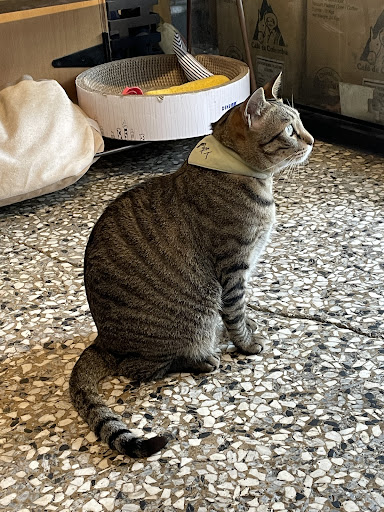 《店貓》 Biru🥰=啤酒🍻的台語🐈 很有個性但非常可愛,因為曾經是流浪貓,請小心靠近!老闆特地幫他戴著「會咬人」的領巾是說真的!(我差點曾被Biru貓牙舞爪過😂)