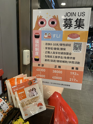 Read moreCasual place that you can BYOB. Fun conveyor belt sushi place. Prices are between 30twd to 90twd. Wait staff will ask if you would like to order hand roll, soup, steam eggs, or drinks right after you sit down. There’s a QR code to scan for all they have to offer and if you don’t see them come around on the belt, you can order them with the wait staffs. Sushi and sashimi are great quality. The cake was a bit too sweet. It was almost a full house when we arrived but took only like 3 minutes to get seated....