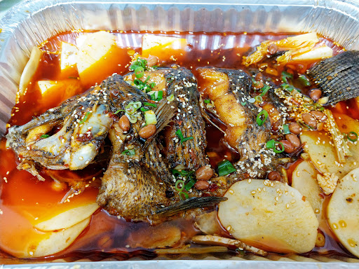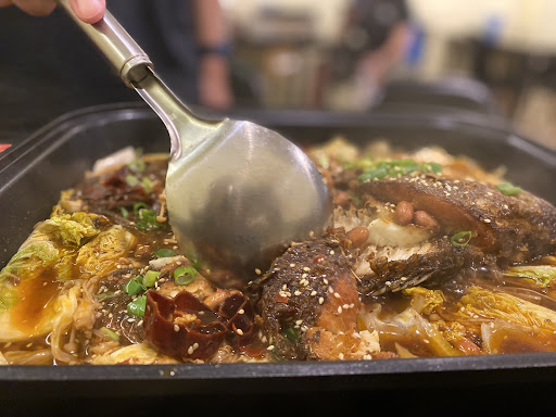 點了香辣烤魚(點小辣) 老闆貼心的讓辣度可以調整 魚肉鮮嫩好吃 浸泡在醬汁的大白菜超級順嘴 一口接一口,停不下來。