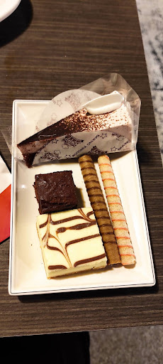 【菜品】 熟食區選擇挺多的,但我沒怎麼吃,就吃些涼拌海瓜子、涼拌干貝唇、白斬雞(都是雞腿的部位,肉質和味道都不錯)、章魚燒(真心不推,沒有焦香,裡頭都是麵糊的黏稠感) 海鮮區當然來了不少盤的生魚片,嚐了些淡菜、雪螺、小卷,雖然都是川燙而已,但因為冰塊直接蓋在上頭,整個味道都被沖淡了,薑醋醬味道不足,五味醬味道搶眼。 火鍋自助區也是不少菜品,我只拿了高麗菜、玉米、鴨腸(前置有處理好,沒啥腥味,也沒有久置,煮過依然膨潤)、蛤蜊(個頭很有誠意,非常新鮮有肉)、蝦子、花枝漿(調味剛好,而且還有花枝塊),不會讓人覺得用火鍋料在充數,新鮮程度也很夠,食材只剩一些時,就會趕緊補上,可惜沒看到生雞蛋和網路上說的竹蟶。 生菜沙拉水果吧,我忘了去碰沙拉吧了,意外卻去碰了水果吧,綠色奇異果意外熟度夠,完全不會酸澀,被砍了頭百香果被我挖來做水果茶,但水果不冰涼真的口感有差! 甜點&冰淇淋區,甜點有蛋糕、布丁、波士頓派、乳酪蛋糕、果凍茶凍、各式各樣的餅乾,我選了檸檬蛋糕和紐約乳酪蛋糕,檸檬蛋糕感覺應該是蜂蜜蛋糕,但乾硬到讓人懷疑這是什麼,乳酪蛋糕還OK,但餅乾底似乎吸收了不少水氣,有點濕;冰淇淋好像是杜老爺的桶冰,種類6~8種吧!