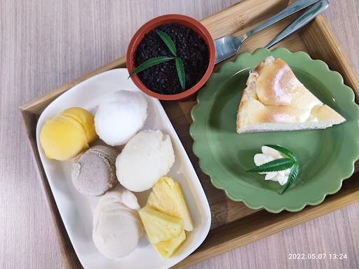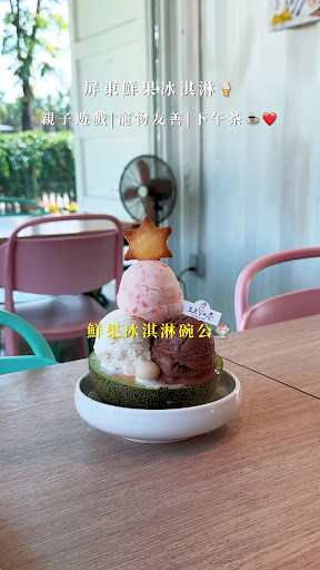 Read more《2019年屏東十大好店之一》 隱藏在偏鄉巷弄內的冰店,環境整潔,整體以明亮乾淨的顏色為主,給人一種舒適陽光的感覺。 戶外也有長條形小水池,裡有養眾多鯉魚,只是感覺魚的年齡都偏小🤣🤣🤣另外此店也是寵物友善餐廳,所以不管是遛毛小孩或帶小孩來度過悠閒的下午都還蠻適合的👍👍👍 冰品種類眾多,且味道自然純粹,尤其草莓、玫瑰跟鮮奶口味的我超愛👍👍👍 缺點與個人建議: (1)擺盤:個人覺得「冰淇淋派對」的擺盤真的需要改進,不然完全沒有派對的感覺,拍起來也不好看👍 還有「南國之夏」菜單上的圖片明明就一顆左下,一顆右上,看起來超讚;結果送來的卻是兩顆疊得超直的,很傻眼:) (2)餐點有什麼沒有了,其實可以一開始就講,不然像我們好不容易選好想吃「燒麻糬冰」,結果點餐時店員才說今天沒有賣了:) (3)低消偏高:個人覺得以最低餐點價格50元或70元會比較好,畢竟如果只是單純想吃個一球冰或泡芙時,就無法滿足低消80元的條件了,但畢竟店家一定有自己的考量啦👍👍👍