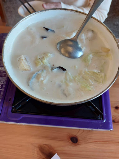 Read more上星期第一次到訪時,因為工作的關係而知道這間店,感覺也還不錯。 今天第二次帶家人特地再訪,約莫13:00到貴店用餐,一樓只有我們這一組客人,因為家人愛吃火鍋所以點了一份牛奶火鍋、三個炒飯、一個湯,旁邊的老闆娘聽到了就回說叫我們不要點火鍋因為大廚不在她兒子不會煮(當下聽到有點傻眼),隔壁的其它工作人員也聽到了,就回說可以啊,於是就點了牛奶火鍋。 上菜時,就只有一個鍋桌上來如圖,再無其它菜盤(吃這麼多次的火鍋第一次看到沒有菜盤的)。 再來菜單上炒飯有附水果或者飲料,遲遲沒送,我們詢問是否有附飲料,得到回覆是沒有飲料,又問那水果呢?回說水果是番茄,才又送上...