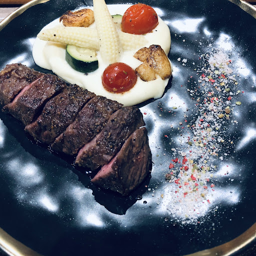 鴨胸油醋沙拉的鴨胸我覺得稍微有點難咬,油醋味道很濃烈,比較不合我口味。 ⠀⠀⠀⠀⠀⠀⠀⠀⠀⠀⠀⠀⠀⠀⠀⠀⠀⠀⠀⠀⠀⠀⠀ 奶油香蒜軟法一份有兩片,口感真的非常軟,蒜香味不會太搶戲,三兩口就可以解決一片了。 ⠀⠀⠀⠀⠀⠀⠀⠀⠀⠀⠀⠀⠀⠀⠀⠀⠀⠀⠀⠀⠀⠀⠀ 其食薯條一上桌真的是香味四溢,帶皮的厚薯,灑上滿滿的香料,鹹香夠味很涮嘴。不過口味真的很重,吃到後來會覺得太鹹,搭配飲品應該會好些。 ⠀⠀⠀⠀⠀⠀⠀⠀⠀⠀⠀⠀⠀⠀⠀⠀⠀⠀⠀⠀⠀⠀⠀ 培根南瓜濃湯很濃郁,還不錯。 ⠀⠀⠀⠀⠀⠀⠀⠀⠀⠀⠀⠀⠀⠀⠀⠀⠀⠀⠀⠀⠀⠀⠀ 松露燉飯我看google評論上有點兩極,推薦的人很多,但也有部份人不推,我們自己吃是覺得很超值。松露味很濃,米心不至於到硬,但也不軟,是吃得到口感的。 ⠀⠀⠀⠀⠀⠀⠀⠀⠀⠀⠀⠀⠀⠀⠀⠀⠀⠀⠀⠀⠀⠀⠀ 翼板牛排,肉味道不錯,但會覺得份量稍微少了一些。馬鈴薯泥打得非常細緻,應該有添加一些鮮奶油,有些許甜味。我自己是比較喜歡稍有口感的馬鈴薯泥。 ⠀⠀⠀⠀⠀⠀⠀⠀⠀⠀⠀⠀⠀⠀⠀⠀⠀⠀⠀⠀⠀⠀⠀ 這間加入口袋名單好一陣子了,生意很好座位數不多,建議要來用餐一定要先訂位。 店家的廚房就是門外的小攤,裡面空間佈置的挺漂亮的,我們坐的兩人座位看來是後來加放的,桌布跟別桌風格差很多,有點小可惜。