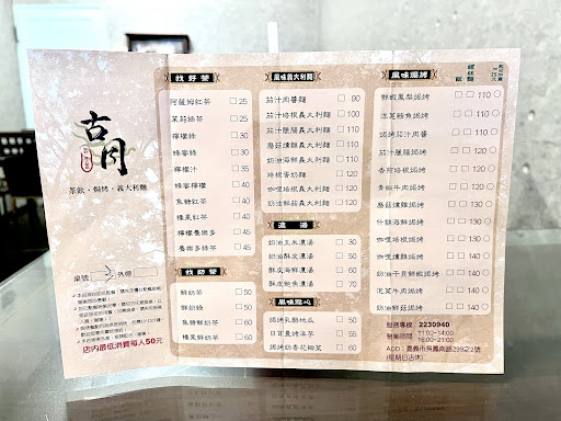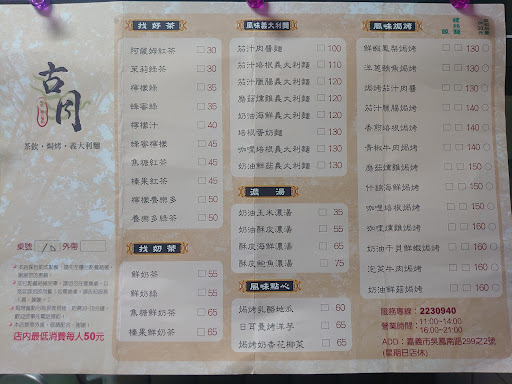 Read more【類型】焗烤、義大利麵、茶飲 【價位】正餐$90起(低消$50/人) 【餐點】 焗烤茄汁肉醬飯$110 青椒牛肉焗烤飯$120 日耳曼烤洋芋$55 奶油酥皮濃湯$50 阿薩姆紅茶$25大杯,可調整甜度 【心得】 嘉義數一數二的老字號焗烤義大利麵店,份量夠、點的餐點都好吃,有起司粉可自行添加!用餐尖峰時段需要等待~汽車停車位要找一下(店面位於車流多的位置,不好停車) 【私心大推薦】 一、焗烤茄汁肉醬飯: 我喜歡吃有點濕軟的飯!茄汁肉醬很均勻的分布在飯粒上,吃起來不會太乾又入味~上面的起司完完全全是我愛的style...