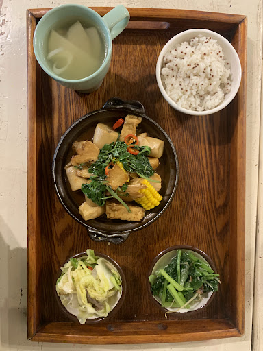 Lovely vegetarian restaurant with a variety of vegan options - The three cup mushroom and tofu is really delicious! It comes as a set meal that is very reasonably priced - the sides taste a little band compared to the flavourful main dish but still...