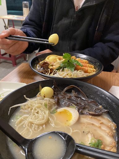 香蒜豚骨 菜很多+半顆半熟蛋+肉片適度 可調口味 第一次習慣吃原味 覺得偏淡