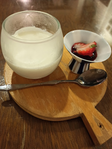 套餐的份量很足夠,光是沙拉裡就和有三種水果,芭樂、棗子、小番茄,濃湯吃得到南瓜顆粒,鹹香溫醇 ! 最後的甜點是莓果奶酪,手工的草莓醬香氣撲鼻,可圈可點。