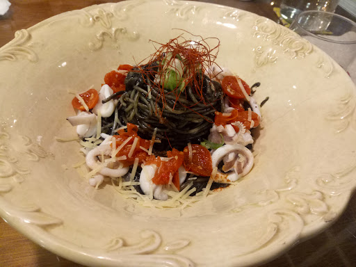 餐點的話吃得出用心,老實說很久沒吃到那麼好吃的義大利麵了,首先義大利麵煮的熟度很剛好,Q 而不硬不軟,透抽用的是一整隻,而且口感Q 嫩,可見烹煮時都有特別注意烹煮時間,在很多家義大利麵店裡實屬難得 ! 有些店家對煮菜都沒 SOP ,每個食材每次出來的口感都不一樣,這道麵唯一美中不足的是醬汁,風味有點比較清淡些,和我個人喜歡的濃郁番茄味有些落差。