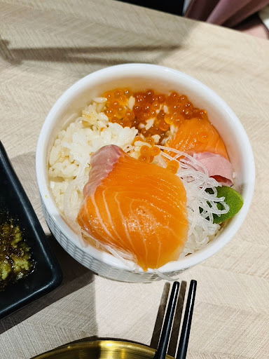 缺點: 等半小時,還先出餐給比我們慢到的熟客,真的是很謝謝,還跟熟客說我們都點烤的。 不是欸!我還有點生魚片、鮭魚丼飯、握壽司欸,有生的吧! 1400元居然吃不飽,350左右的鮭魚丼飯你給我全放尾巴… 忘了說,這個碗比我家貓碗還小🙁