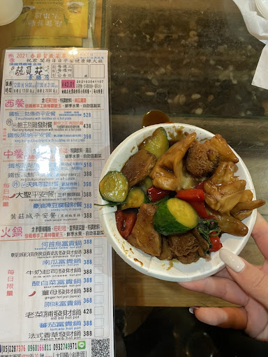 Read more6:30來此店用餐,等了兩個多小時餐才上..都餓過頭 等到都不餓了!點了鐵板黑鮑平安餐$398,一盤這樣就398.....麵不但沒味道又難吃,等兩個多小時火都上來,只一直說現點現做,看了以前的評論這間餐點要等非常之久,店家說會改進 一點改進都沒有!這樣一盤餐要等兩個多小時⋯⋯麵條是現搓 現發酵的?這種店家不會再造訪第二次!副餐還有看起來非常不ok的菜⋯跟沙拉 甜點,除了甜點 勉勉強強可以接受,看到店家提供的自助餐跟沙拉很傻眼,這4.3顆星根本就是手榴彈,雷到爆炸^_^!!!想吃的人要慎選店家,還有更好吃 出餐更快的素食餐廳哦☺️ 嘉義的喜來樂蔬食超推 平價 便宜...