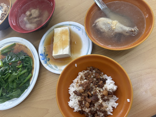 Read more每次回來嘉義就會想來吃,吃的是一個學生時代回憶,每次進去好像都會按人數直接跟你說飯的數量再問你要什麼湯,但今天的闆娘可能撿到槍?可能因為我沒有點四碗飯?可能看我們四個人只點兩碗湯兩碗飯一盤菜一盤豆腐嫌太少?才剛進去看菜單就一直問說要什麼,想說阿妳那麼急我們就想好的人先點,結果跟我說一次點妳很忙沒辦法一個一個點(目測五桌以下每桌一兩個人?)我們人都還沒坐下就說我們吃的東西不要在這裡吃(是在指我們手上的兩杯咖啡?)我們就說我們不會喝 之後點完了還又來問我說除了飯跟湯還要點什麼?闆娘是只顧著自己的情緒,剛剛點的就忘記了嗎? 從以前價格是真的便宜也是好吃的,不過豆腐越來越小塊雞腿越來越小隻飯越來越小碗,今天更是體會到店家的不客氣,我看就讓這個回憶的味道到...