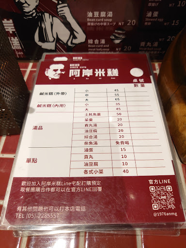 ▲ 2025.05.09. ★★★★★ 價目表調漲 (新增照片8~9) 鹹米糕外帶、內用,各尺寸漲5元 滷肉飯 可外帶、內用( New! ) 菜羹 20→ 25 調漲5元 塑膠容器 有明確標示出尺寸大小