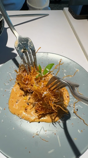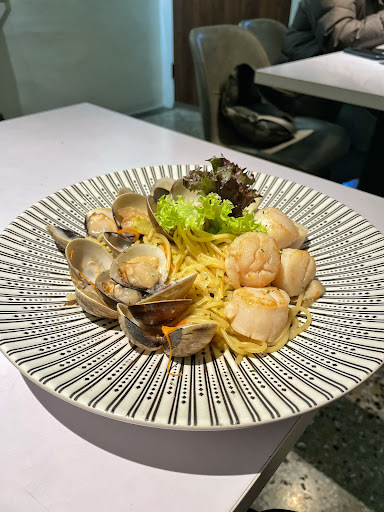 義大利麵的海鮮滿多的,整盤滿滿的蛤蠣還有干貝🤩上面還有鮭魚卵跟海苔絲點綴、裝飾,看起很就很澎湃、讓人胃口全開!義大利麵乳化的不錯,整體調味很平衡,就是感覺沒吃到什麼明太子的味道,有點小小的錯愕😂