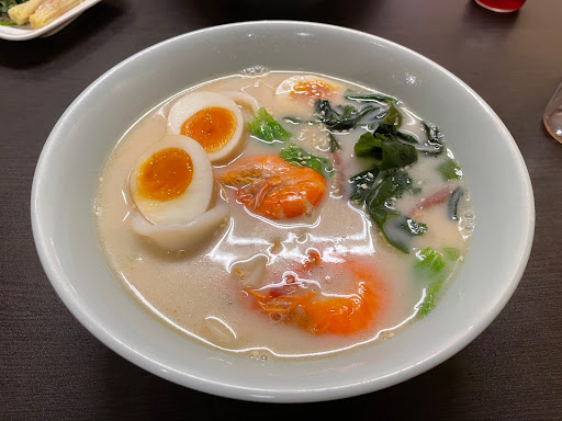我點的是麻辣日式拉麵(130) 裡面有兩隻蝦子 (蝦子沒說很大支,但是也不小) 重點是新鮮.... 蛤蜊感覺有挑過 給了兩顆都蠻大顆的 (重點是沒沙子,吃蛤蜊吃到沙子真的很怒) 還有一些海鮮(章魚、炸魚片跟其他料)